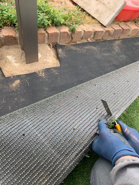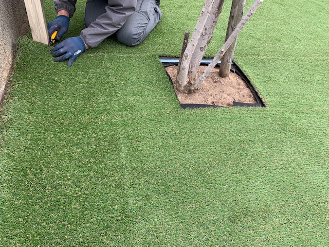 防草シートを敷いたら次はいよいよ人工芝です。