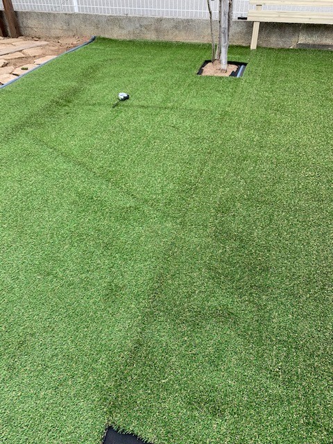 人工芝のつなぎ目は、時間がたつと馴染んで目立たなくなってきます。