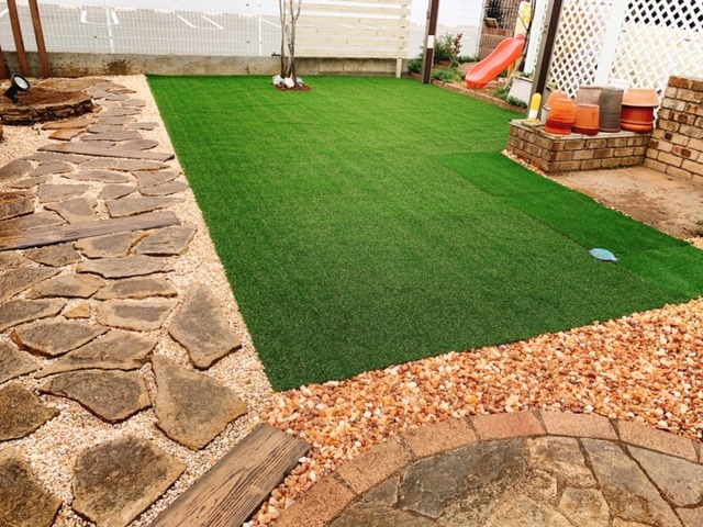 人工芝以外のところには、化粧砂利を敷いて完成です☆