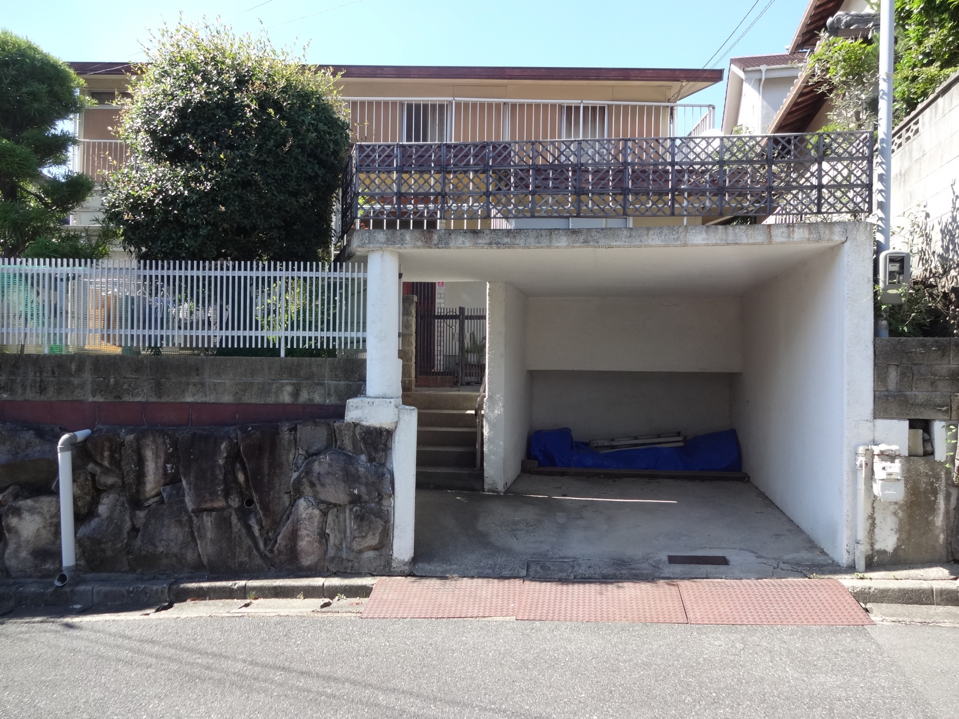 1台分の掘り込み車庫と奥に玄関へ上がる階段がありました