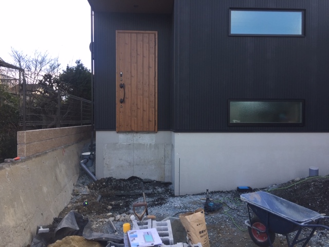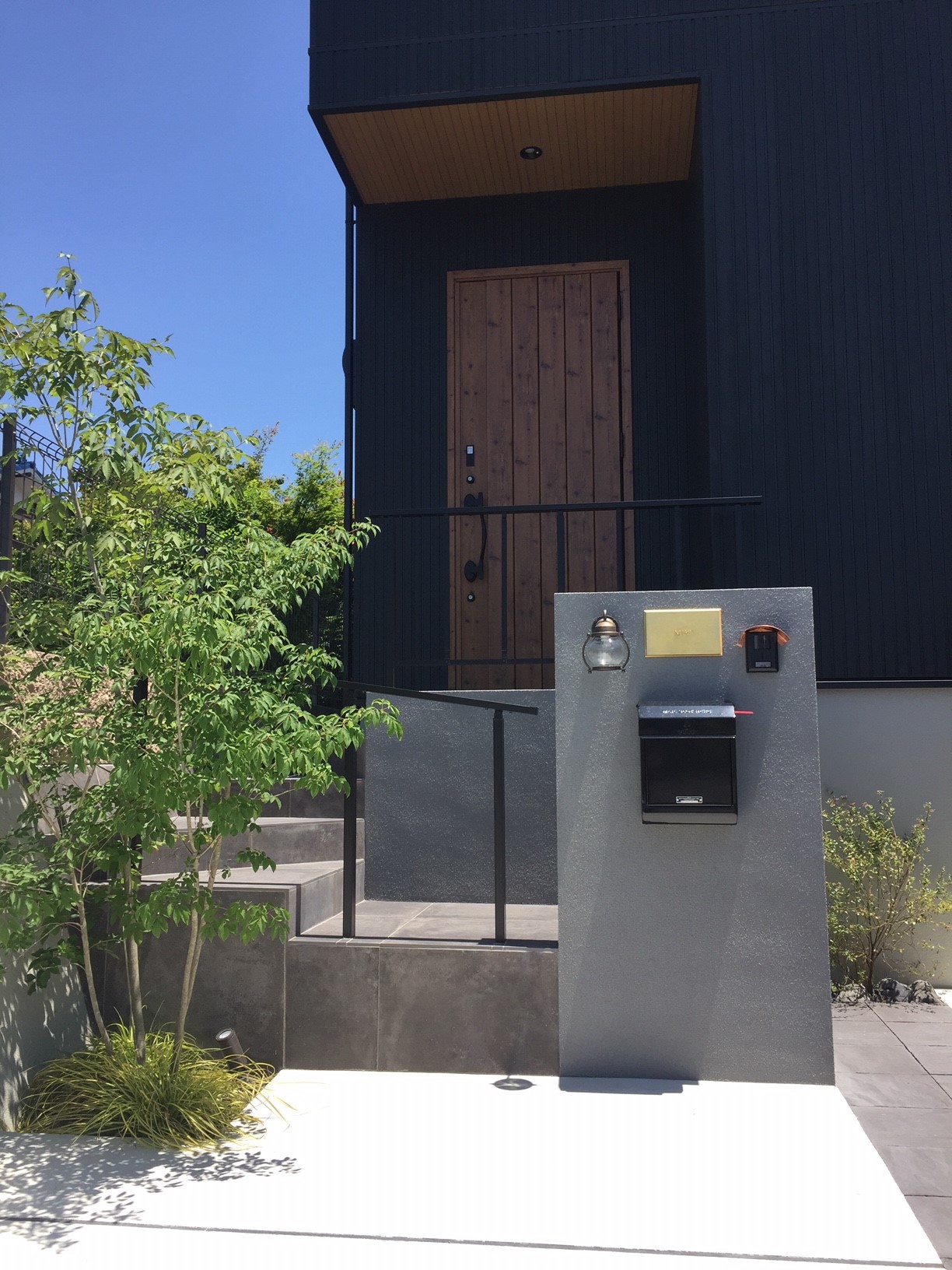 高低差を解消するおしゃれな玄関周り 太子町M様邸 2020年6月11日(THU)門柱や土間などハードな部分が多いと冷たい印象になるのですが小さいスペースに緑を取り込むことで印象がずいぶん変わります特に色目が黒やグレーなどモノトーンですので緑の効果は絶大です施工前仮設の足場も取り外しいよいよ外構工事スタートです
