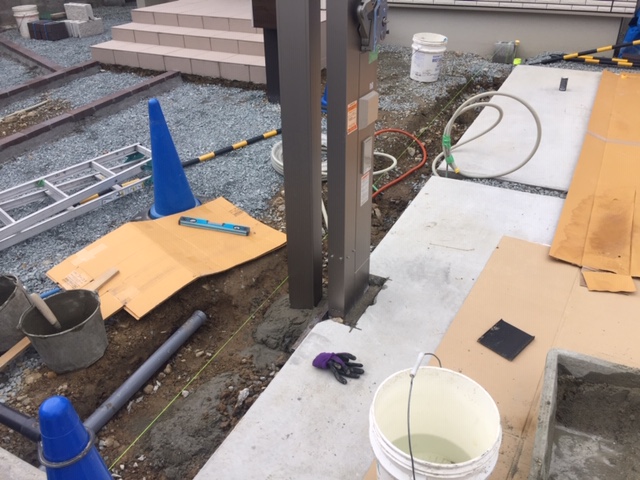 奥の物置までと玄関前をコンクリート等で固めます