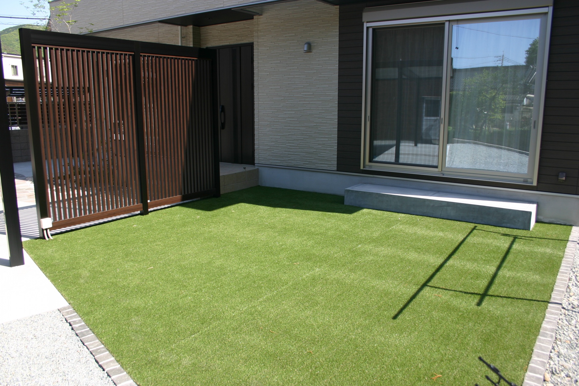 掃出し窓から出てお子様たちが人工芝の上で遊ぶ際は視線を気にせずに楽しんでいただけます
