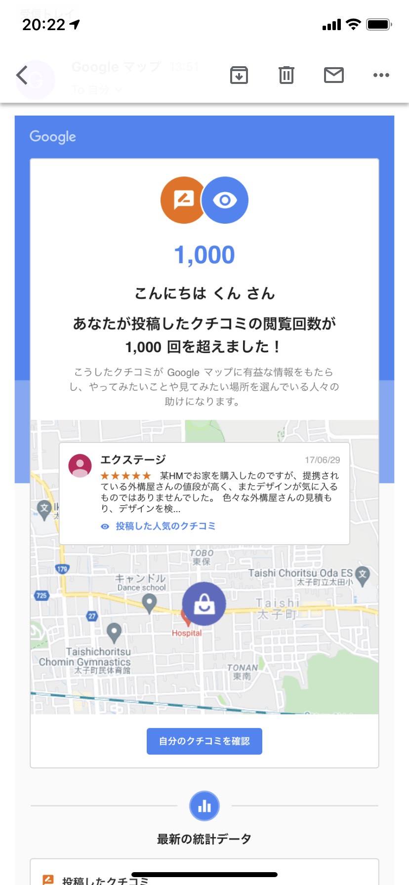 Googleの口コミ エクステージ 2021年6月14日(MON)早朝ランニングは三文の徳!朝ごはんが美味しい代謝が良い涼しくて気持ちがいい朝の睡魔との戦いがつらいですが出来る範囲で頑張っています 話は変わり先日OB様よりご連絡を頂き「Googleの口コミで私がコメントした内容の閲覧回数が1000回を達成した様です」という内容でした「ありがとうございます」とすぐに返信しましたいいお客様に恵まれていることを実感しました