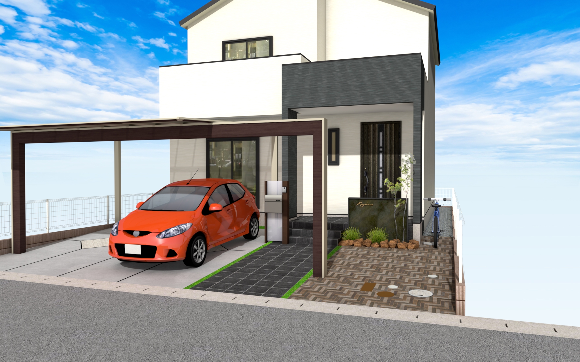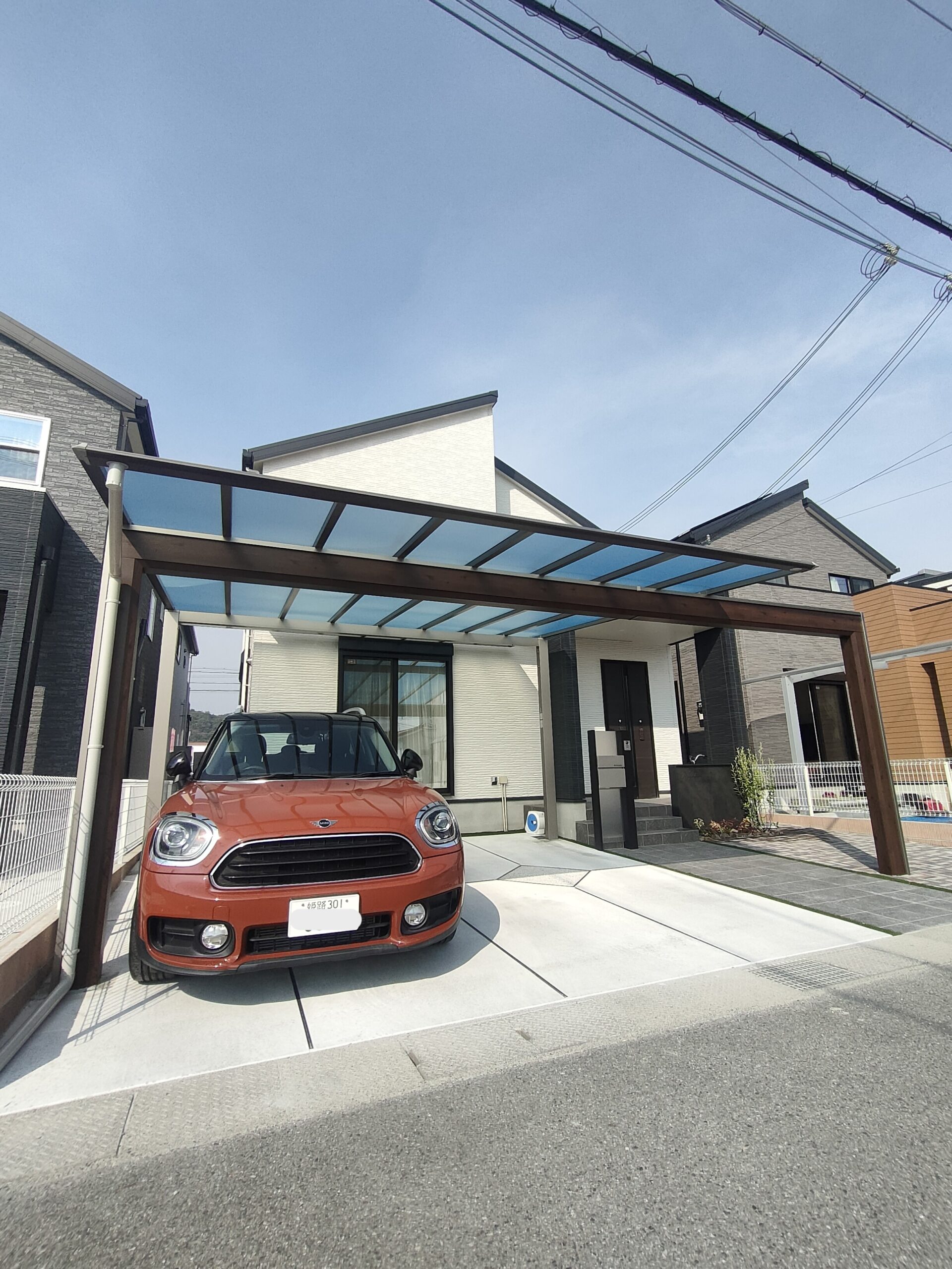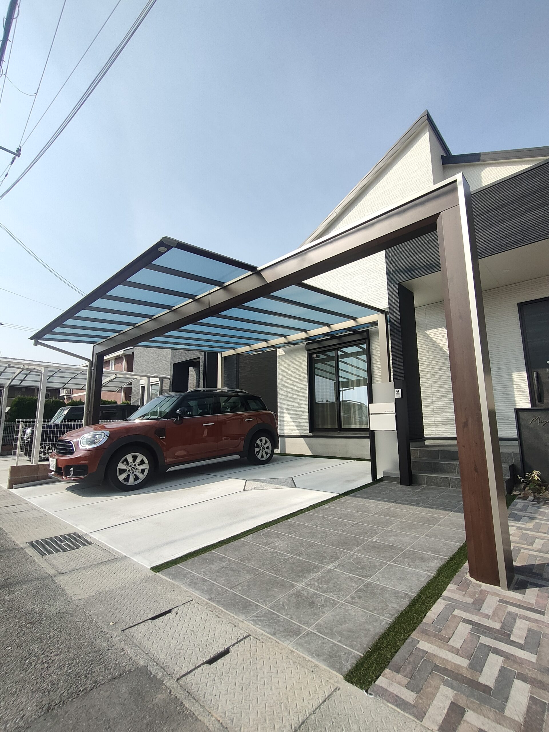 そこで、こげ茶の木目を柱・梁(フレーム)に取り入れることでカーポートの材料としてではなく、外構のデザイン性のあるフレーム部材としてお家を引き立てせてくれます