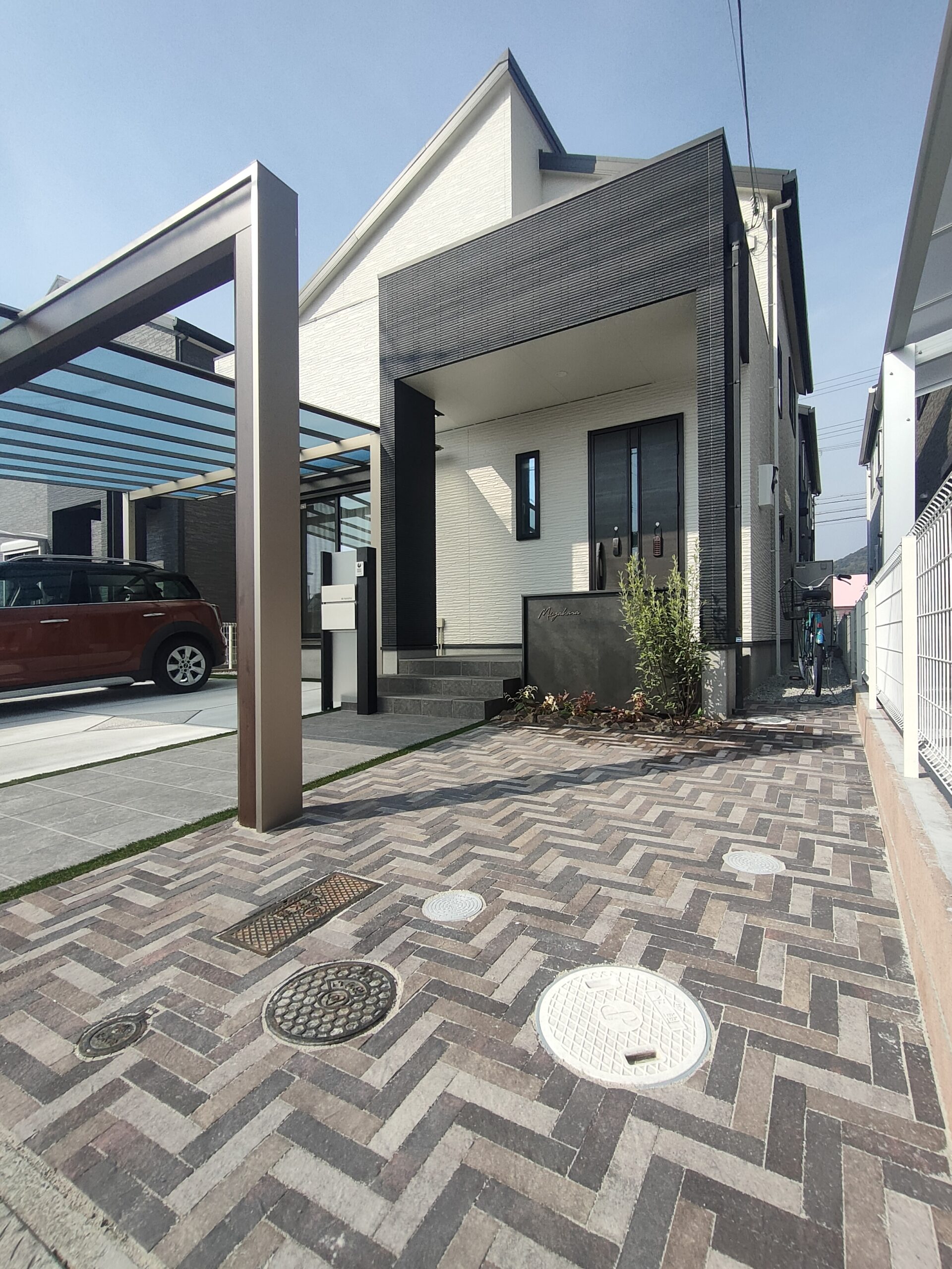 植栽や自然石と合わせてオシャレなアイストップ効果のある玄関前となりました