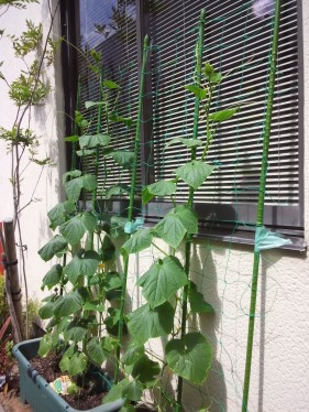 見て下さい、きゅうりどんどん伸びてますよ!