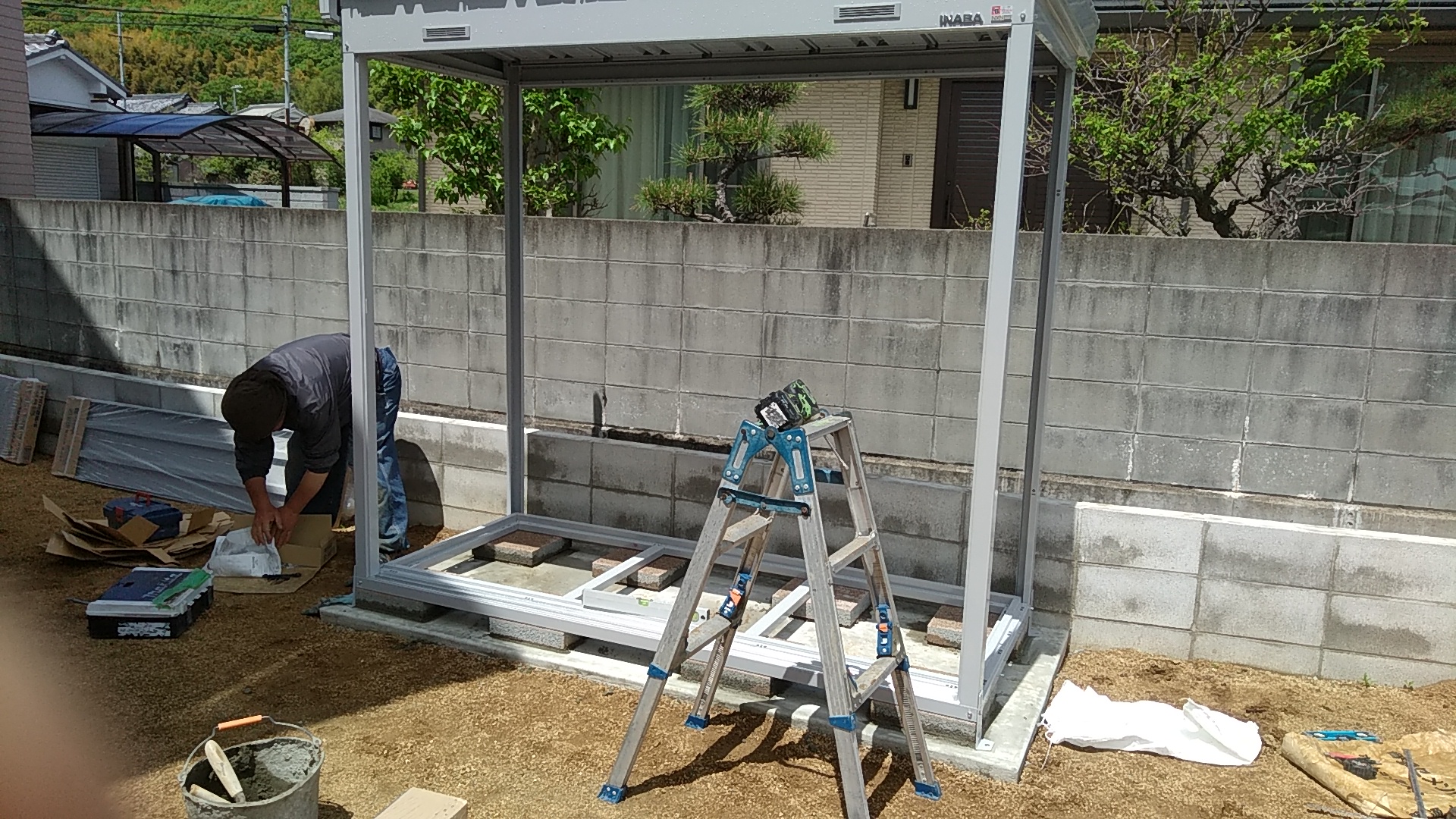 イナバ物置ベタ基礎仕様 姫路物置き工事と自転車置き場工事