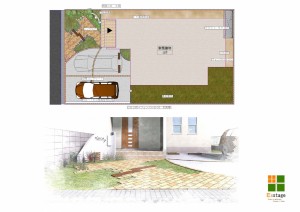 前面パーキングスペースをモノトーンラインを生かしたエクステリアに仕上げます。