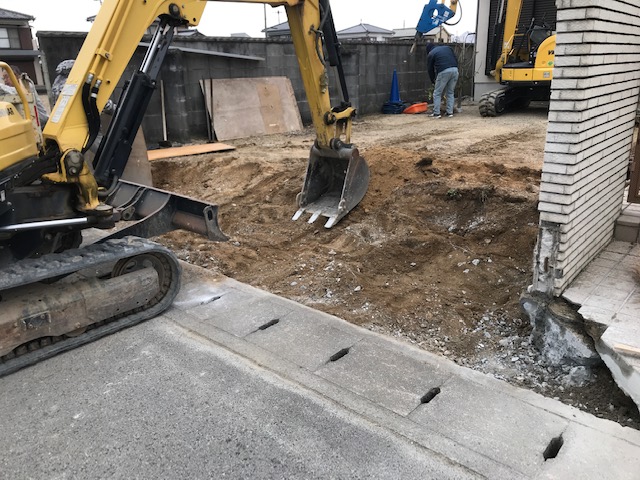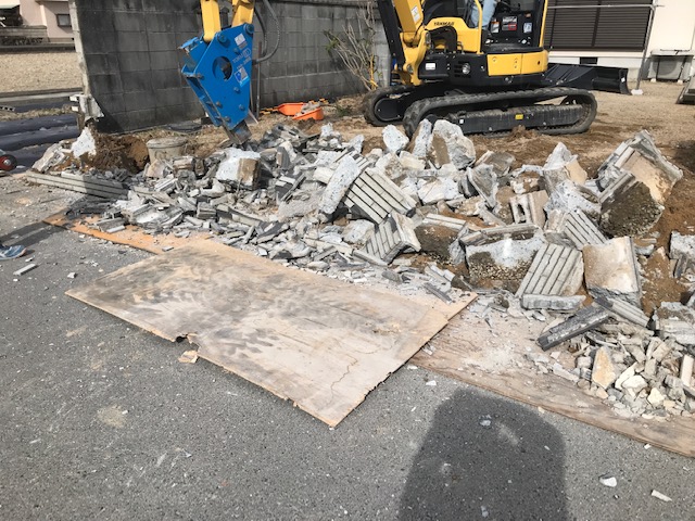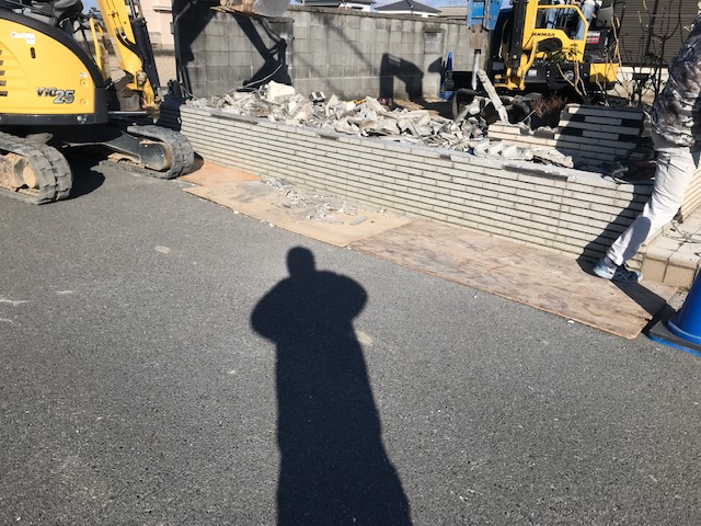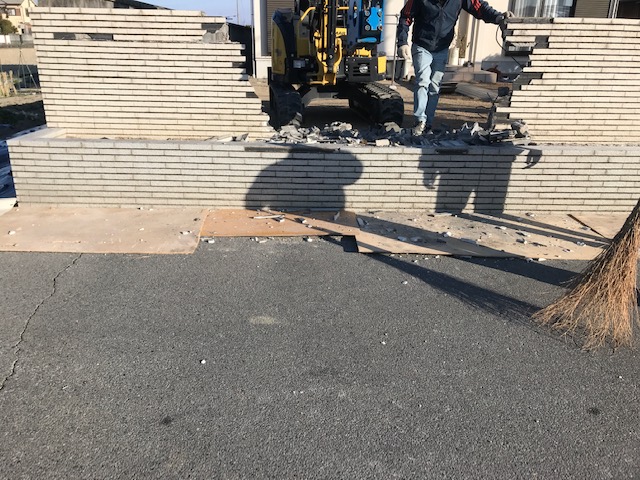 タイルのブロック塀を壊しての車庫拡張です