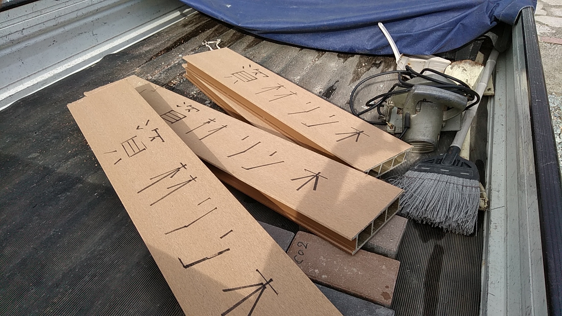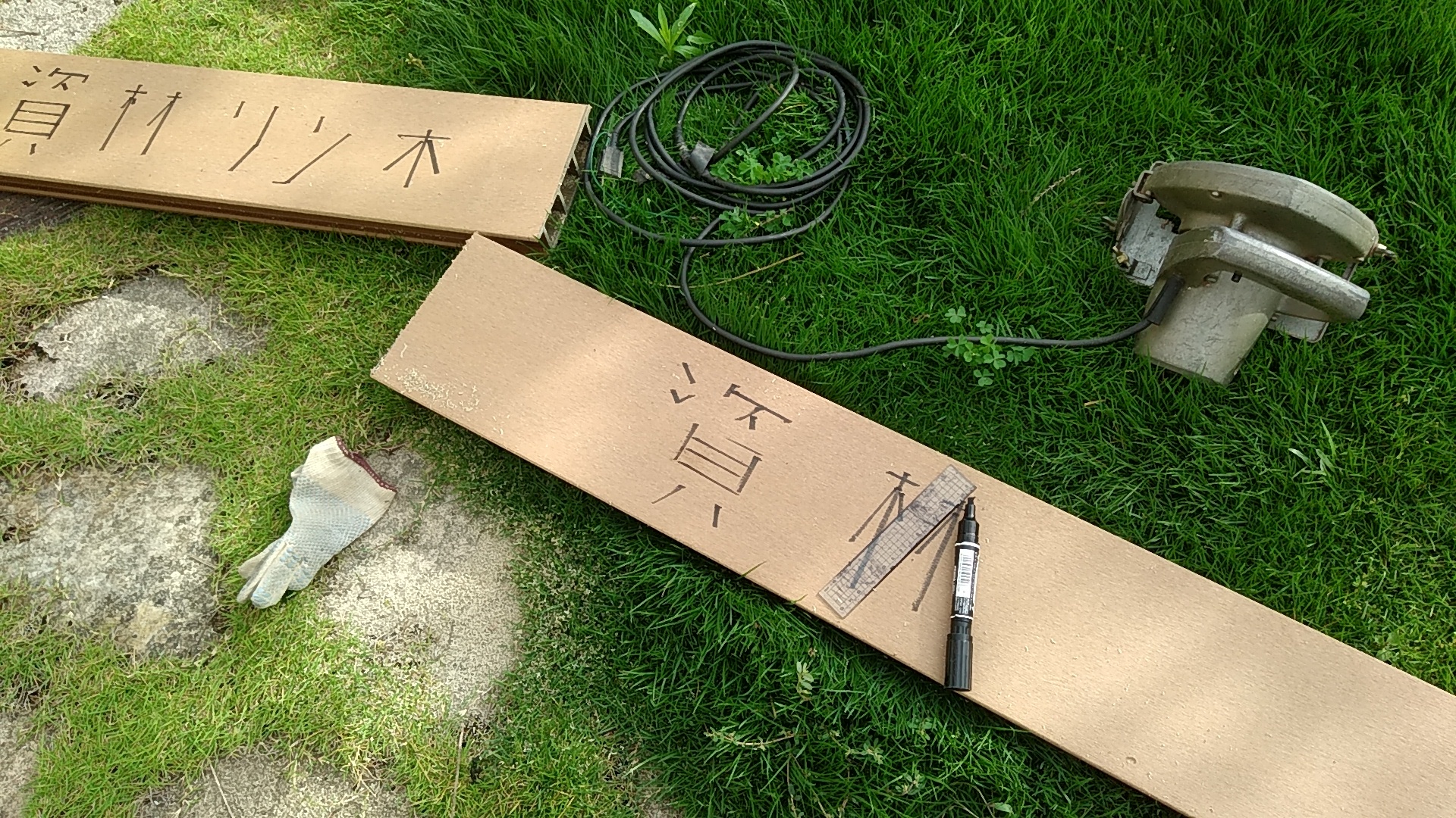 余ったデッキ材を利用した仮設資材 姫路エクステリア