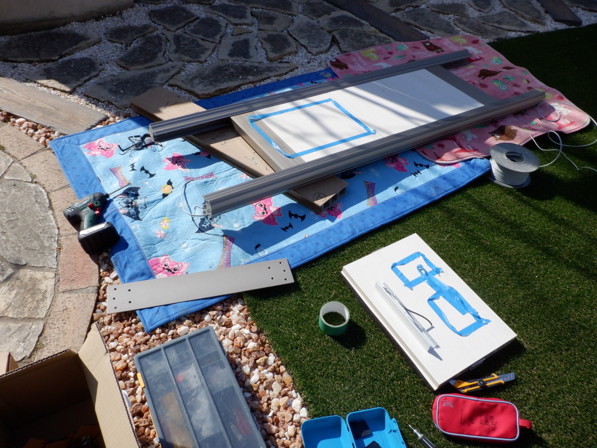 人工芝に寝そべって線を誘導したりで