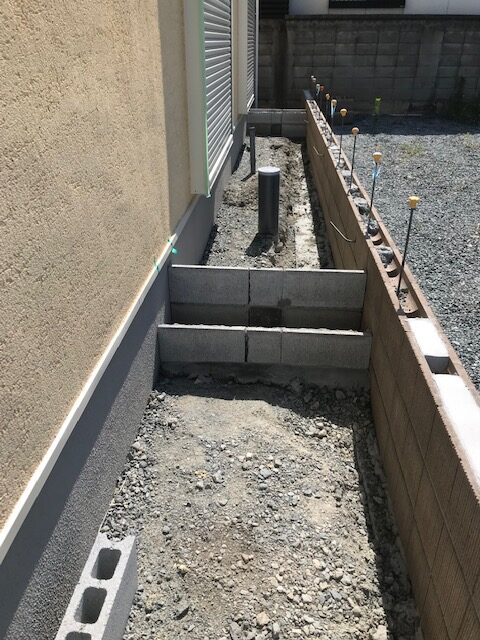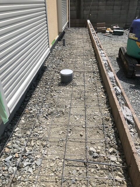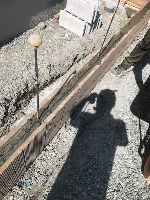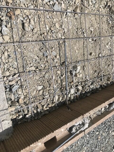 タイルテラス下地ブロック 姫路 エクステリア屋さん タイル下地ブロックです メッシュ筋を入れて下地コンクリートを流します ブロックの横筋配筋状況 土間のワイヤメッシュに ブロック配筋を結束し 40dの定着を持たします 姫路のエクステリア工事は 他店さんとは違う 1級の各種施工管理技士の現場監理する エクステージにお任せくださいひがしぐち