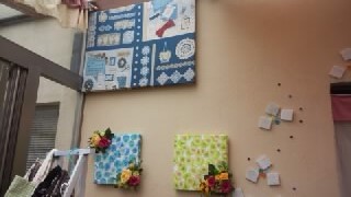 壁塗って、 タイル張ったり、ファブリックパネルを作りましたよ!(頑張りました。)