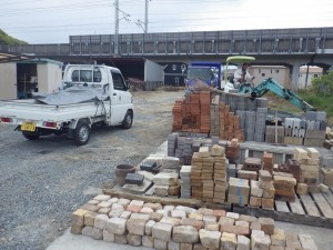 4トントラックで不要な草 土を搬出し 砕石で足元を綺麗に準備中です。