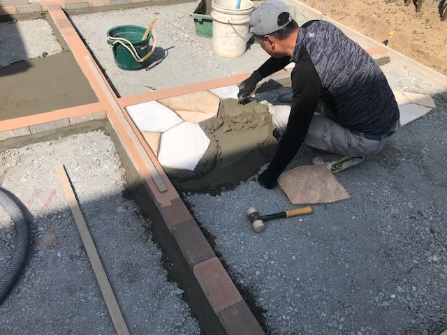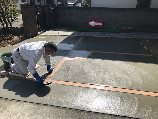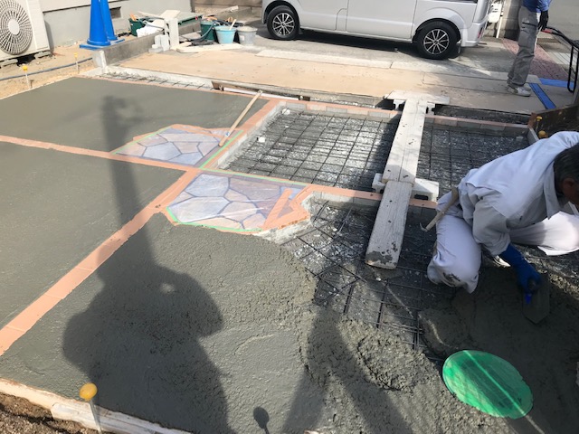 ガレージ拡張工事姫路エクステリアリフォーム 車庫拡張工事 姫路リフォーム工事 エクステージ施工例 拡張ガレージ工事です もう一台分スペースを確保したいご要望 レンガラインで装飾してデザイン的にご提案 メッシュ筋を敷いて土間コンクリート車庫拡張工事1級各種施工管理技士の現場監理するエクステージにお任せくださいひがしぐち