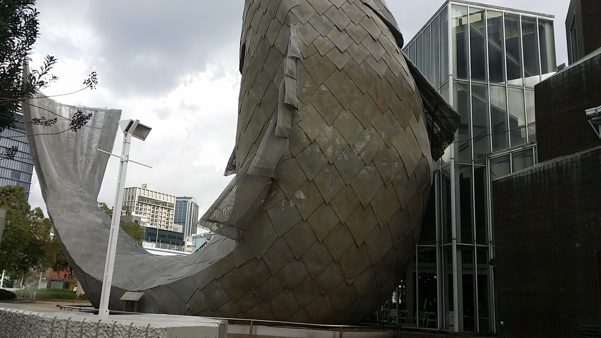 この魚のオブジェのカフェにいつかは入ってみたいと思い続けて約20年