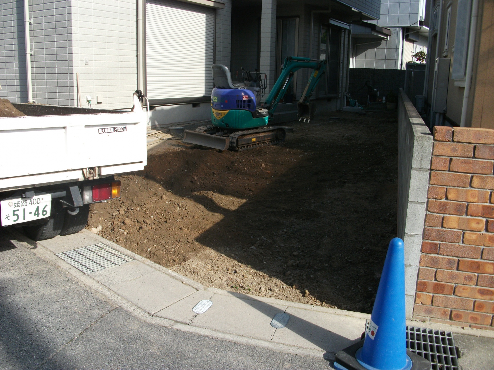 ひがしぐち 先日、姫路市Y様邸が着工いたしました。 ちょっと分りずらいですが重機で土を出す作業です。 主にY様邸では、車庫スペースの工事となります。 土間スペースには、環境にやさしい透水性平板(久保田セメントのUDウオーク)を多く使用します。 カーポートはTOEXの新商品アーキフィットをセレクトしました。 工事の間 お客様にお車の不便をおかけしていますので、工事は速やかに段取り良く進めていきます。 夜のライトアップも楽しみですね。