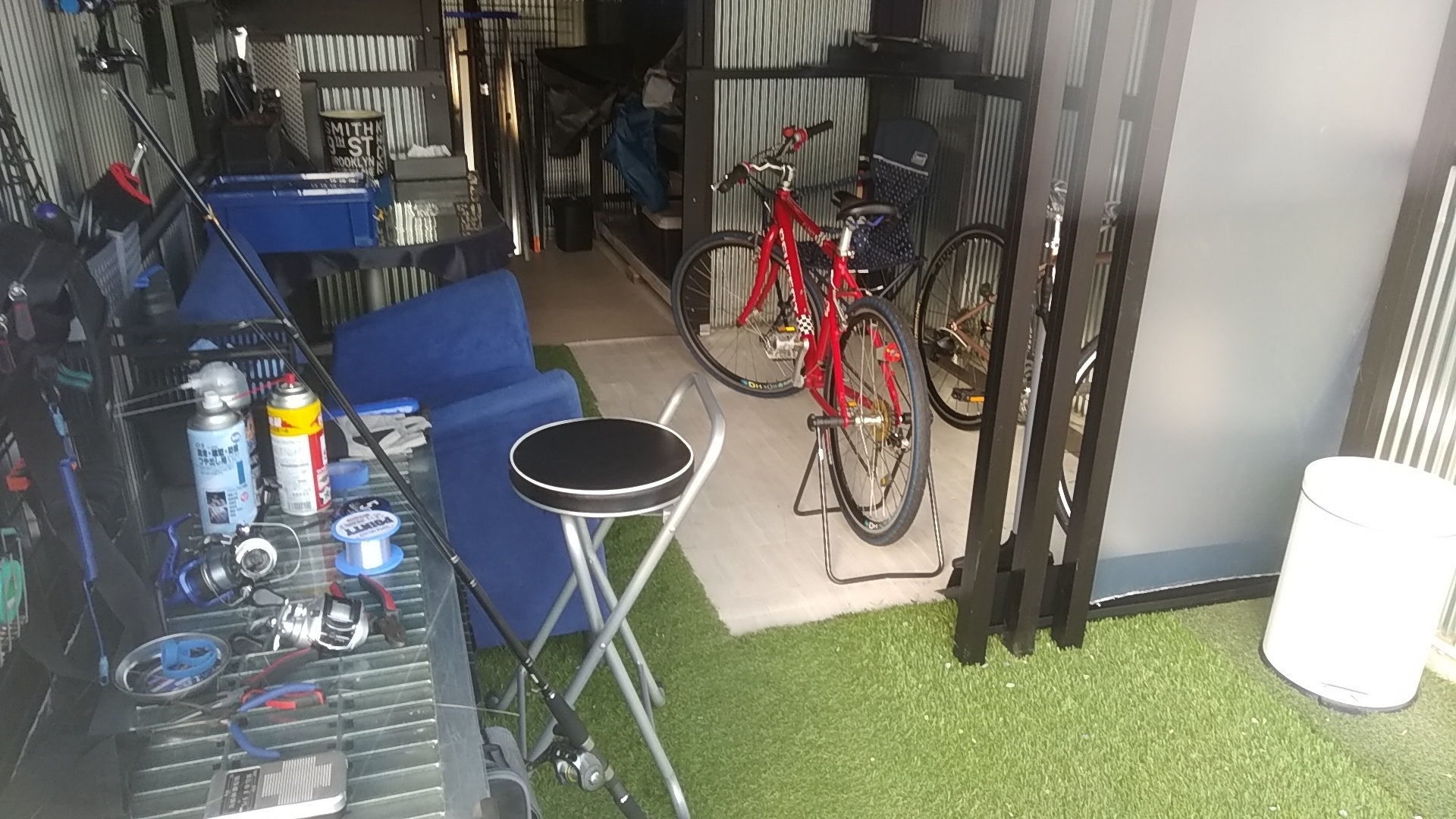 ガレージの机位置の模様替えしたり