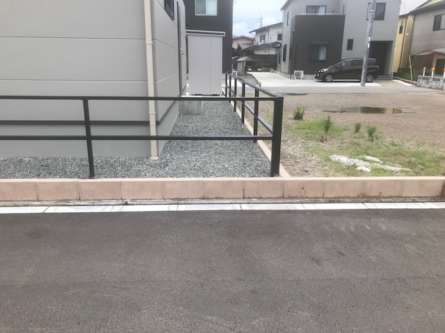 フラットバーフェンス エクステージオリジナル 姫路 エクステリア柵 フラットバーフェンス リクシルのデザイナーズパーツを現場でアングル組した エクステージオリジナル フラットバーフェンス 現場に完全に合わせるので ピッチ 高さ など様々対応できます エクステリアフェンスは各種 1級施工管理技士の現場監理する太子のエクステージにお任せくださいひがしぐち