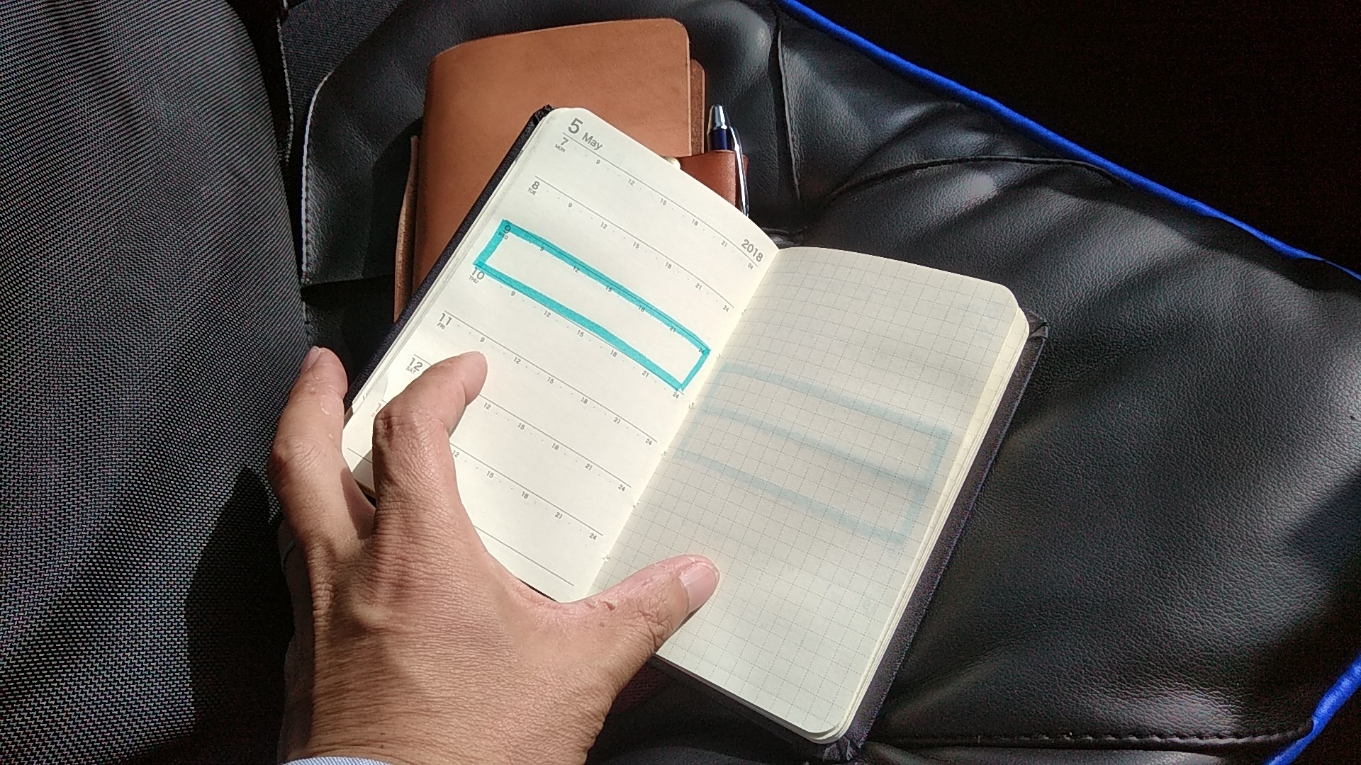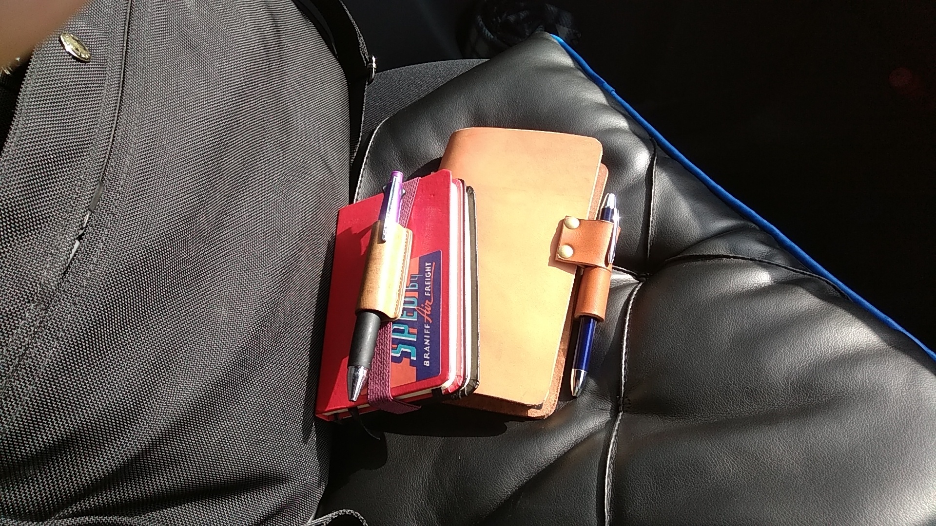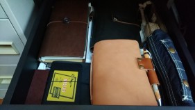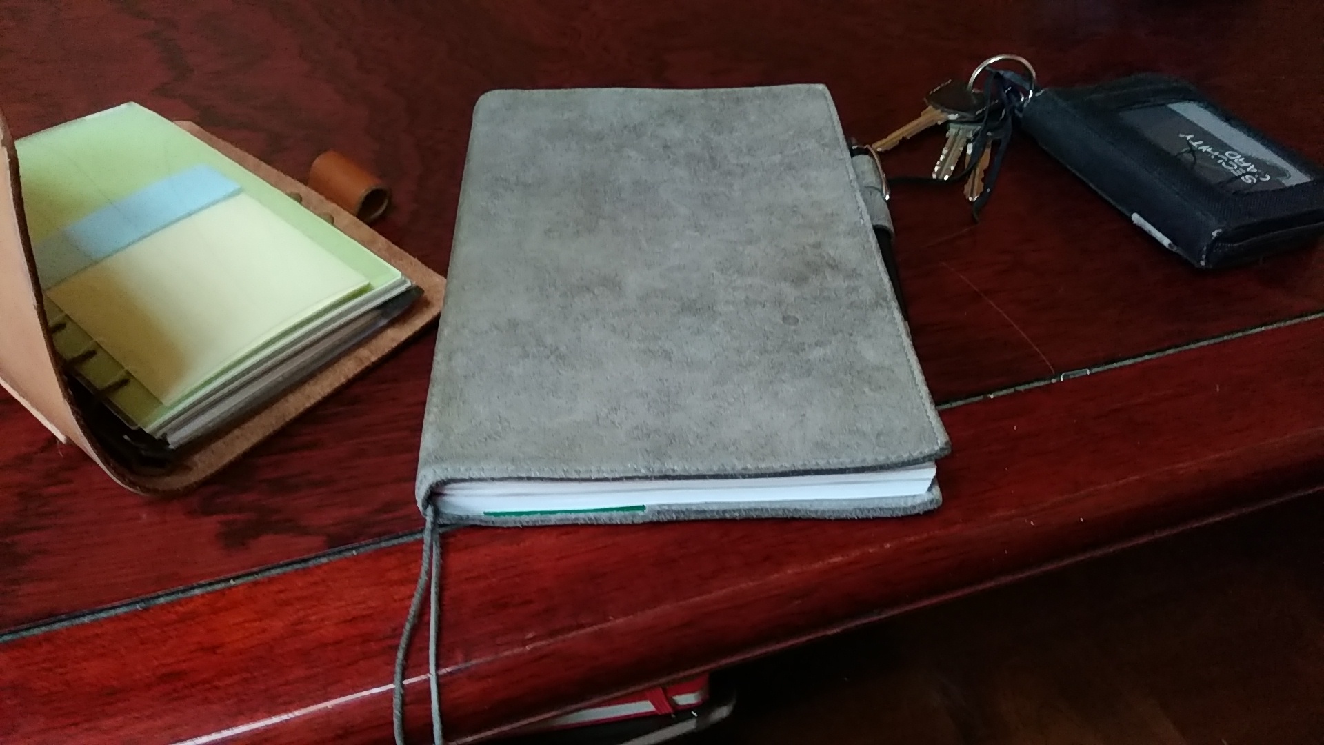今使ってる手前の100均のメモ帳とダイアリーをバンドで止めたものが
