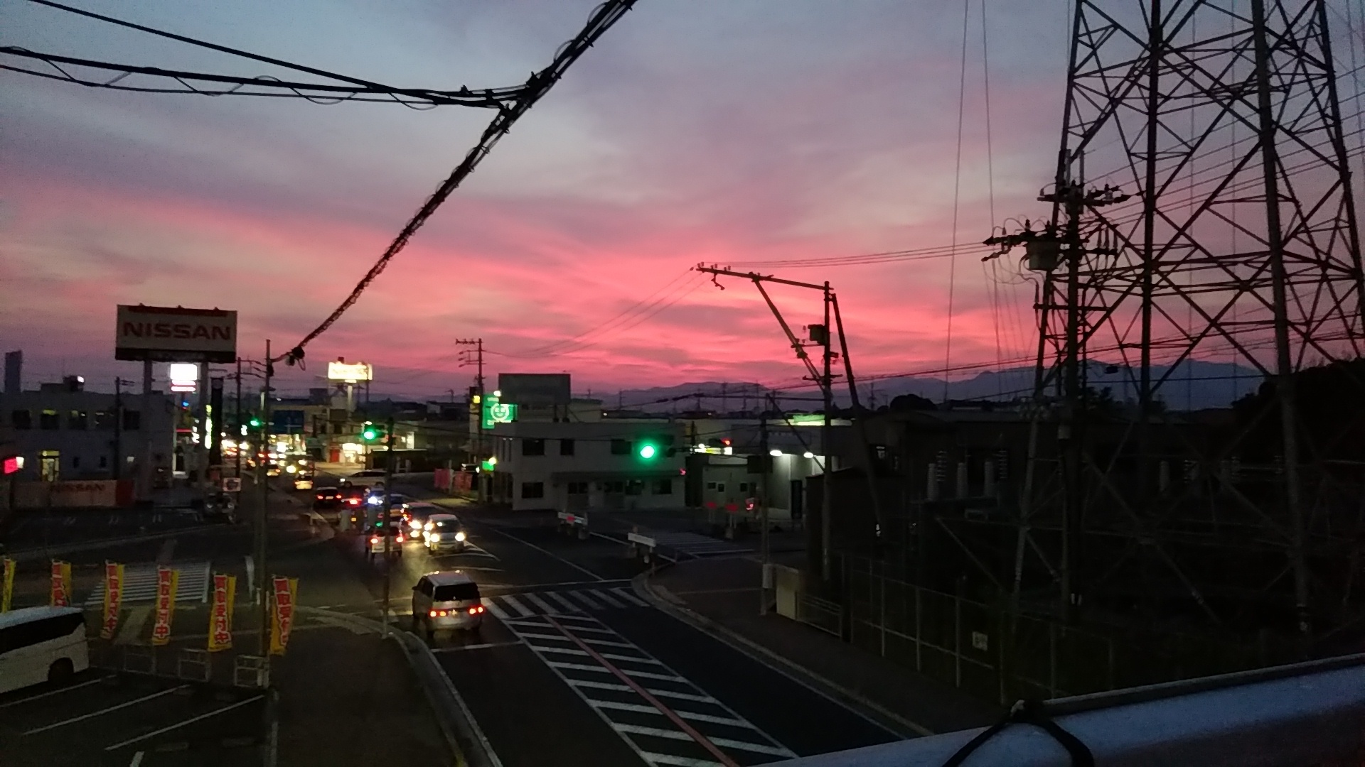 最近歩きながら 歩道橋に登ったり 夕焼けをスマホで撮影するのに二人はまってます(^^♪