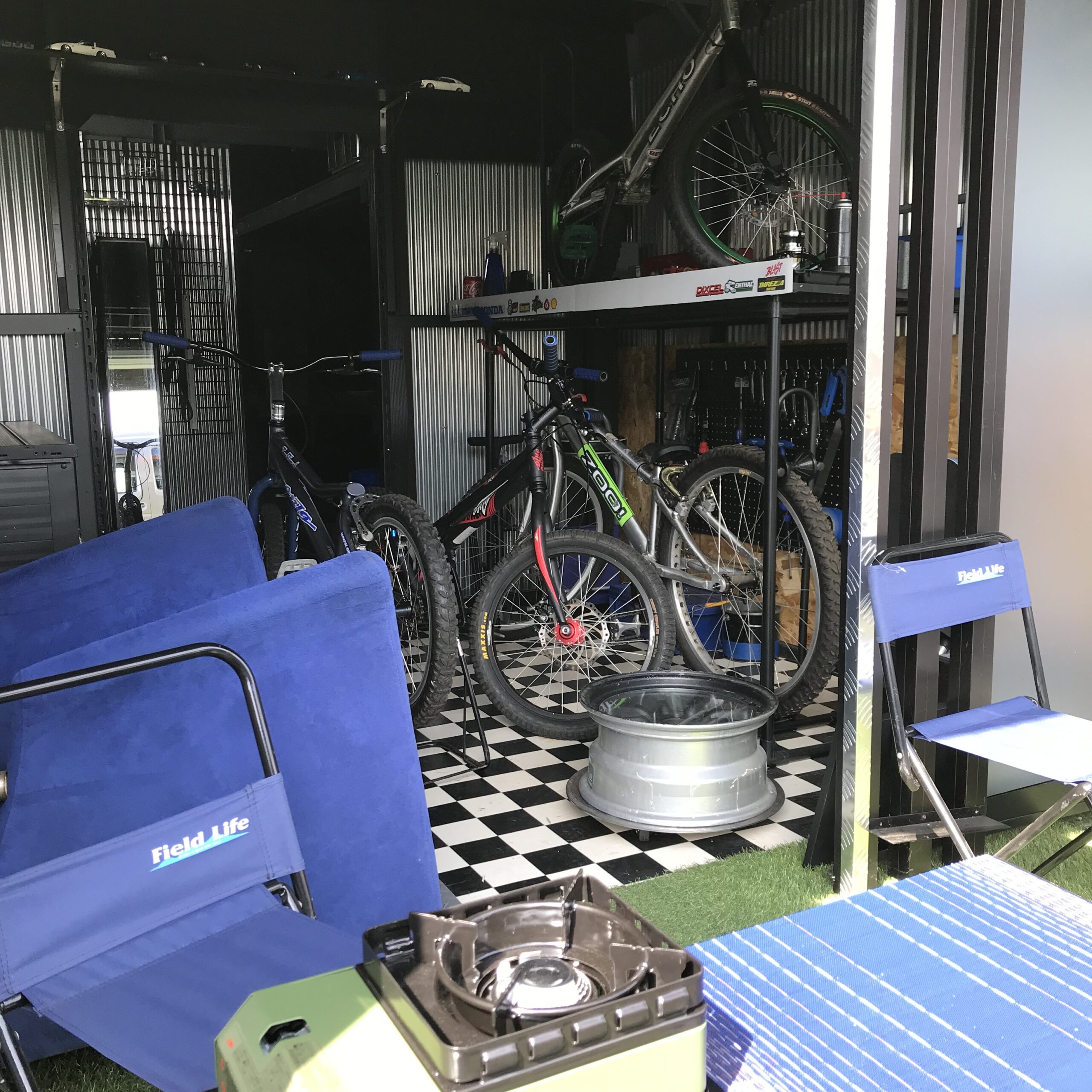 ガレージのミニキッチンコンロで珈琲やミニバーベキュー