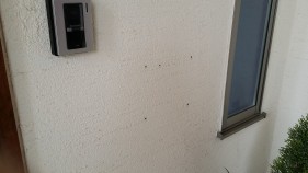 工事中に一度試みましたが、新工法の断熱外壁の為ビスが効かない