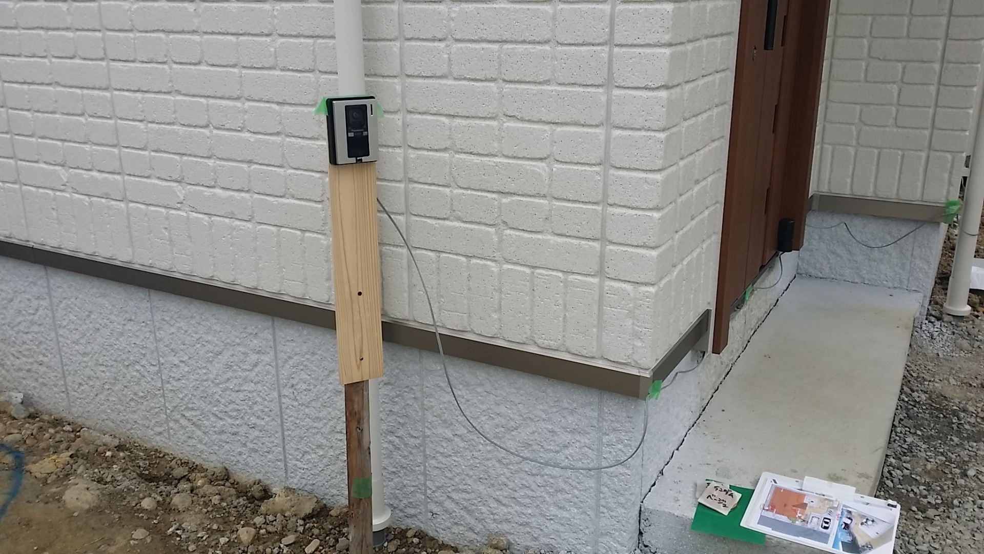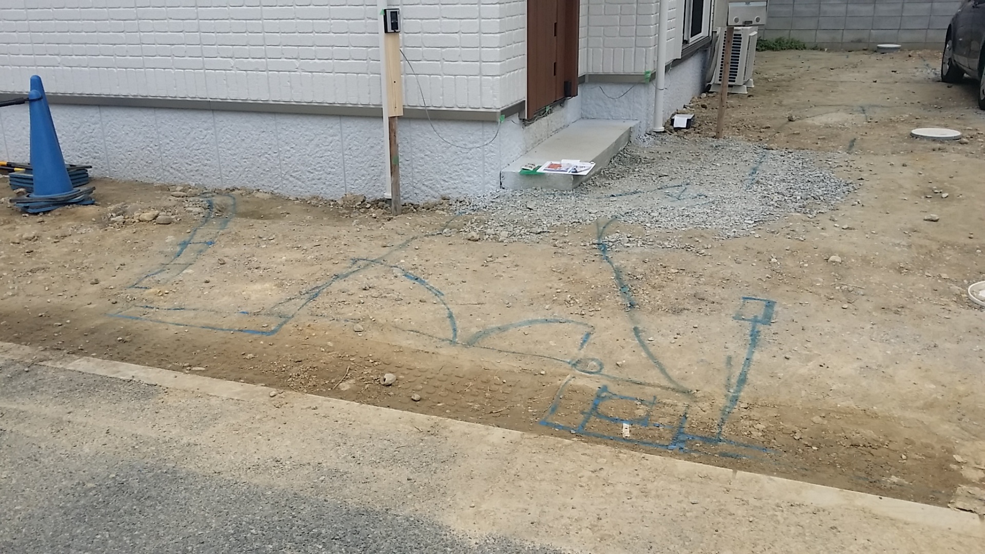 寝そべるRabi 加古川で今週着工予定です 本日 マーキング打ち合わせで細かい配置の確認を行いました地面にスプレーで描くとわかりやすいですね実際に車を入れてみたりして最終確認を行いました 仮設でインターホンも本日取り付けました工事中はこちらの仮設で対応します仮設ポストも設置完了です お庭テラス工事含め 約1ヶ月の長期工事になりますがしっかり現場管理していきます火曜日着工ですが 雪マークがでていますお天気が心配です takashi higasiguchi