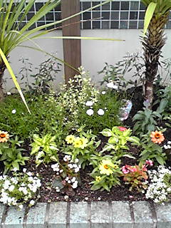 西向きなので、黄色の花を中心に明るくと思い、又余り植えないような花を植えてみました。