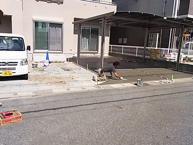 職人さんの話では、カーポートの下だけコンクリートの乾きが遅いみたいです。