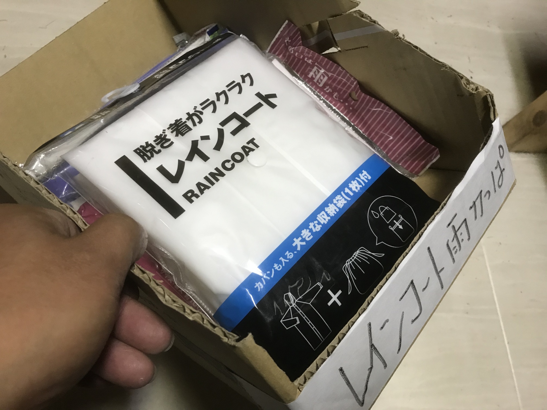 秘密ガレージから自宅の納戸に工具とか移動してるときに棚の奥から出てきた雨カッパの買いだめ10着以上