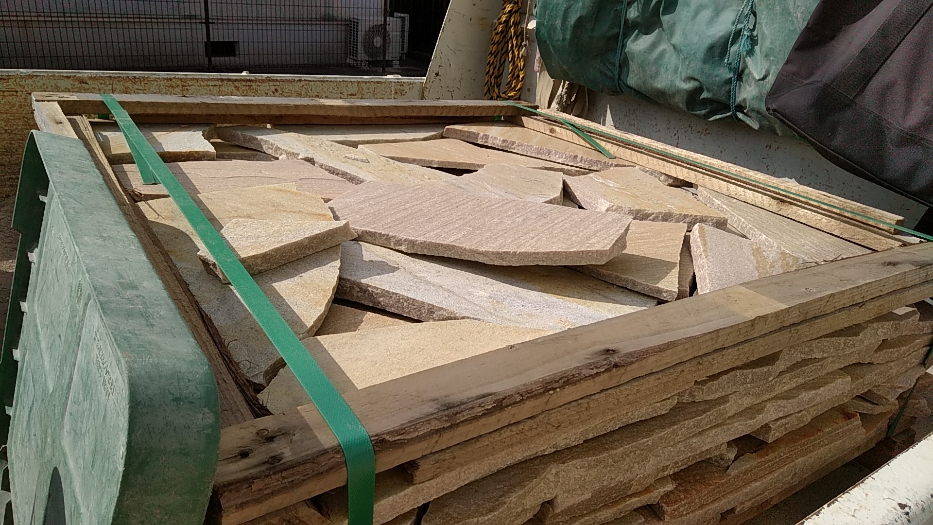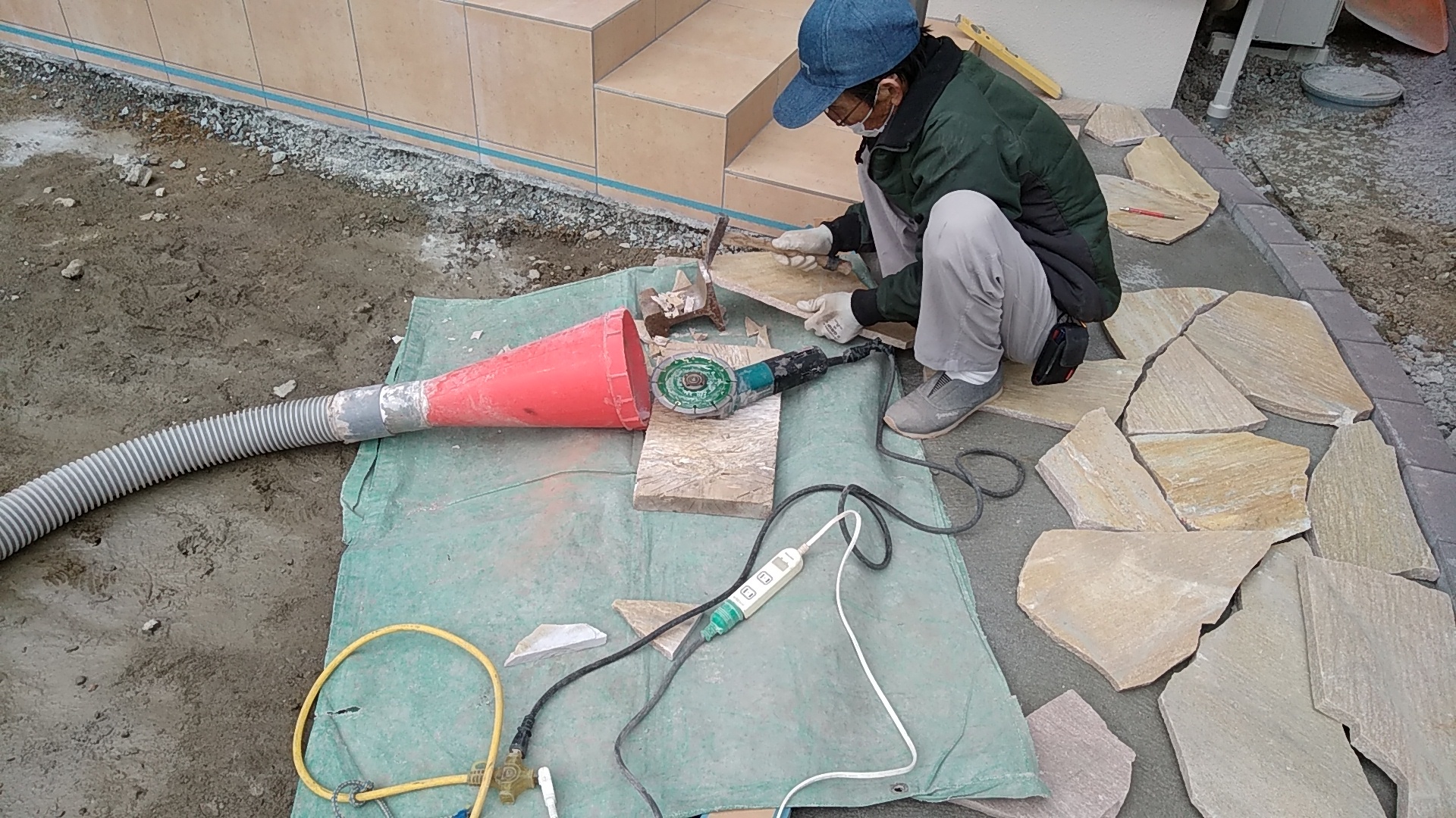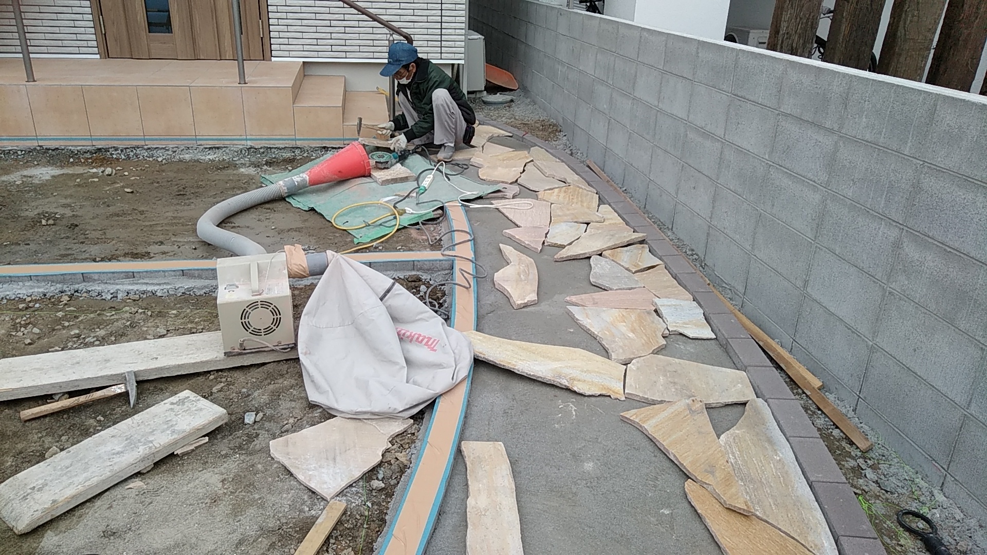 自然石乱張り シェルゴールド色 姫路のエクステリア工事店