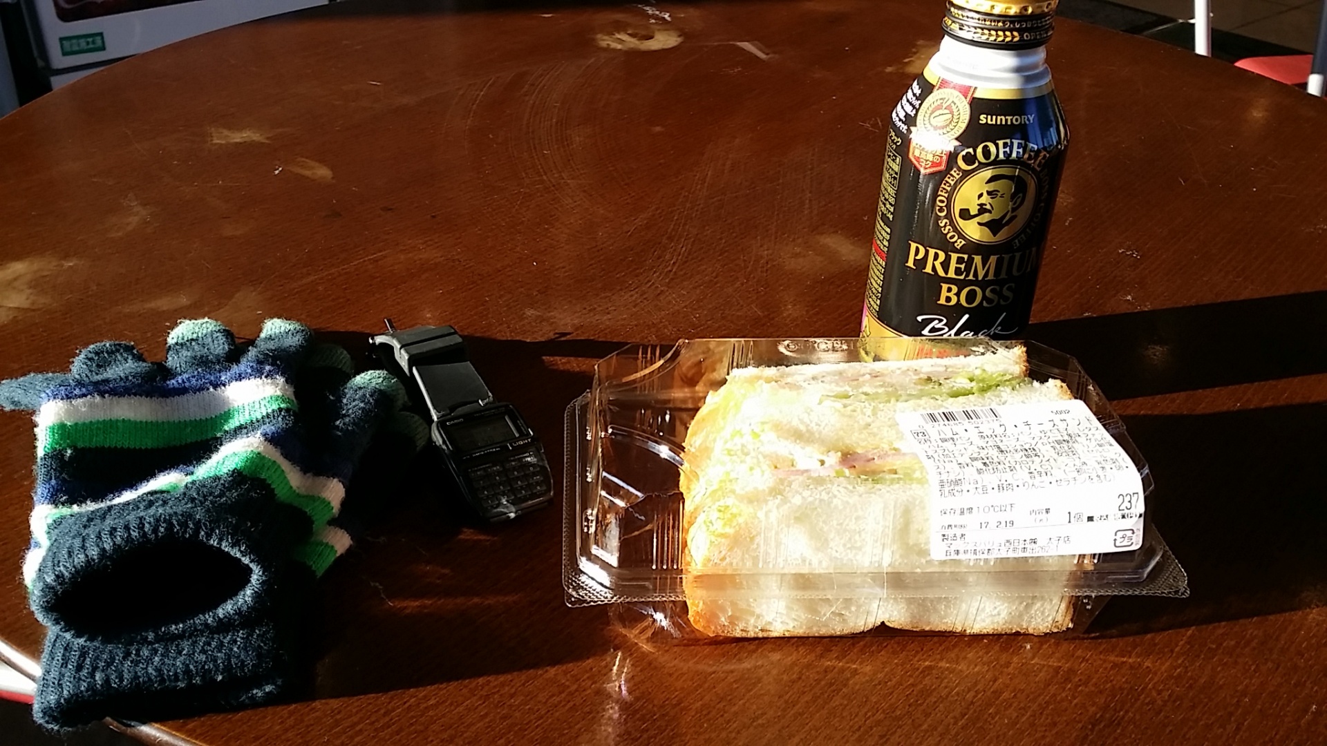 7時に開店なので、出来立てのサンドイッチを180円で買ってコーヒーとでイートインで朝食