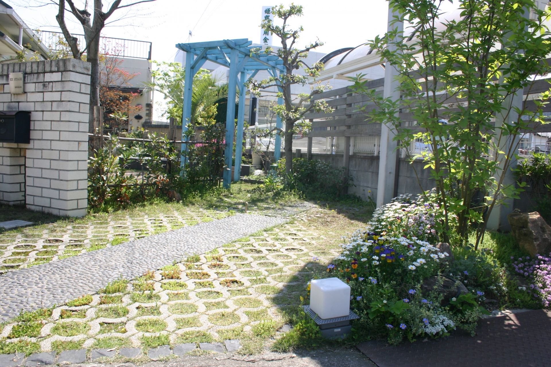 スカイブルーのパーゴラが数年前からシンボルになっています