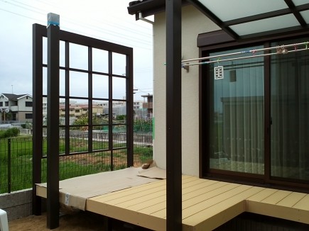 飴色の財布(^.^) 姫路市H様邸 ガーデン2期工事プラスGと屋根独立の施工ですウッドデッキも施工します 格子のプラスG 高さもあり存在感大です(^.^)風よけも兼ねた物干しガーデンスペースがもう少しで仕上がります。 今年は早い時期から台風が次々きます自然のこととはいえ災害が心配です・・takashi higashiguchi