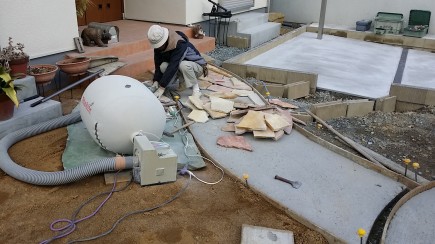 隣接するガレージ工事が完了しアプローチ工事に移ります