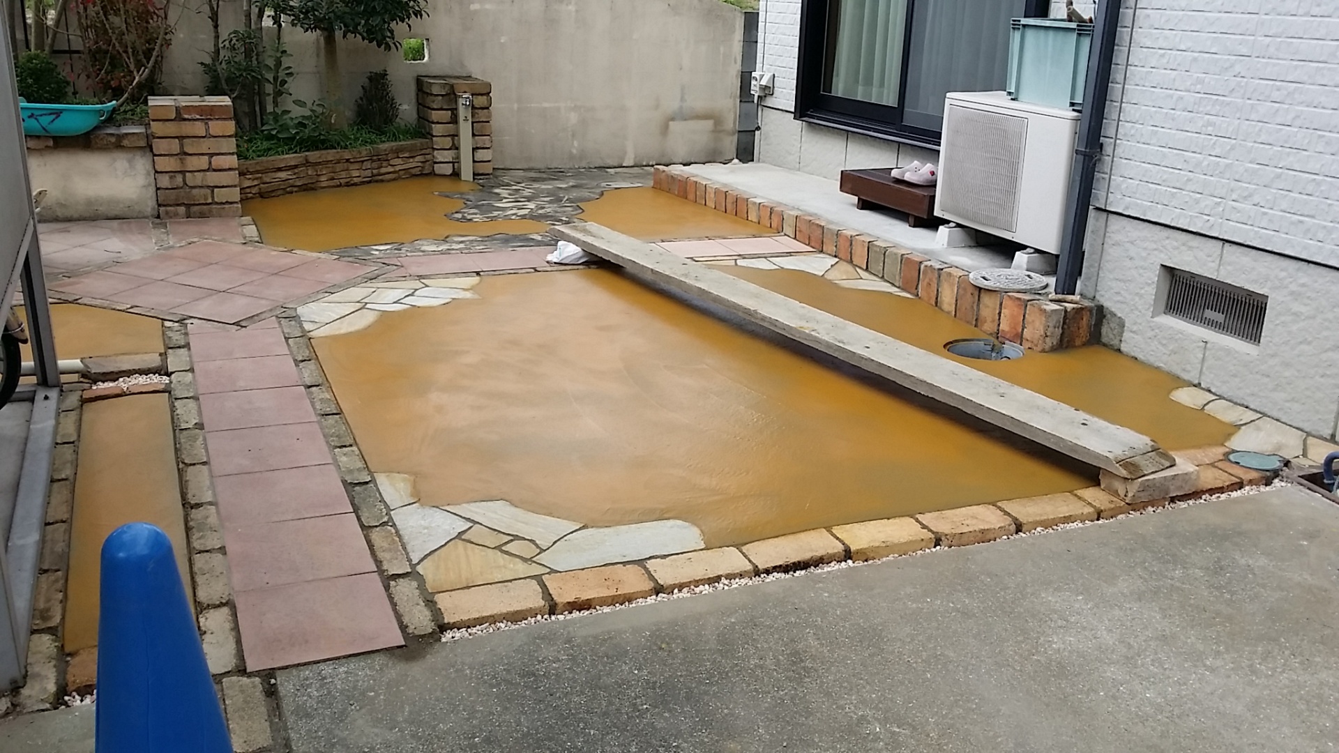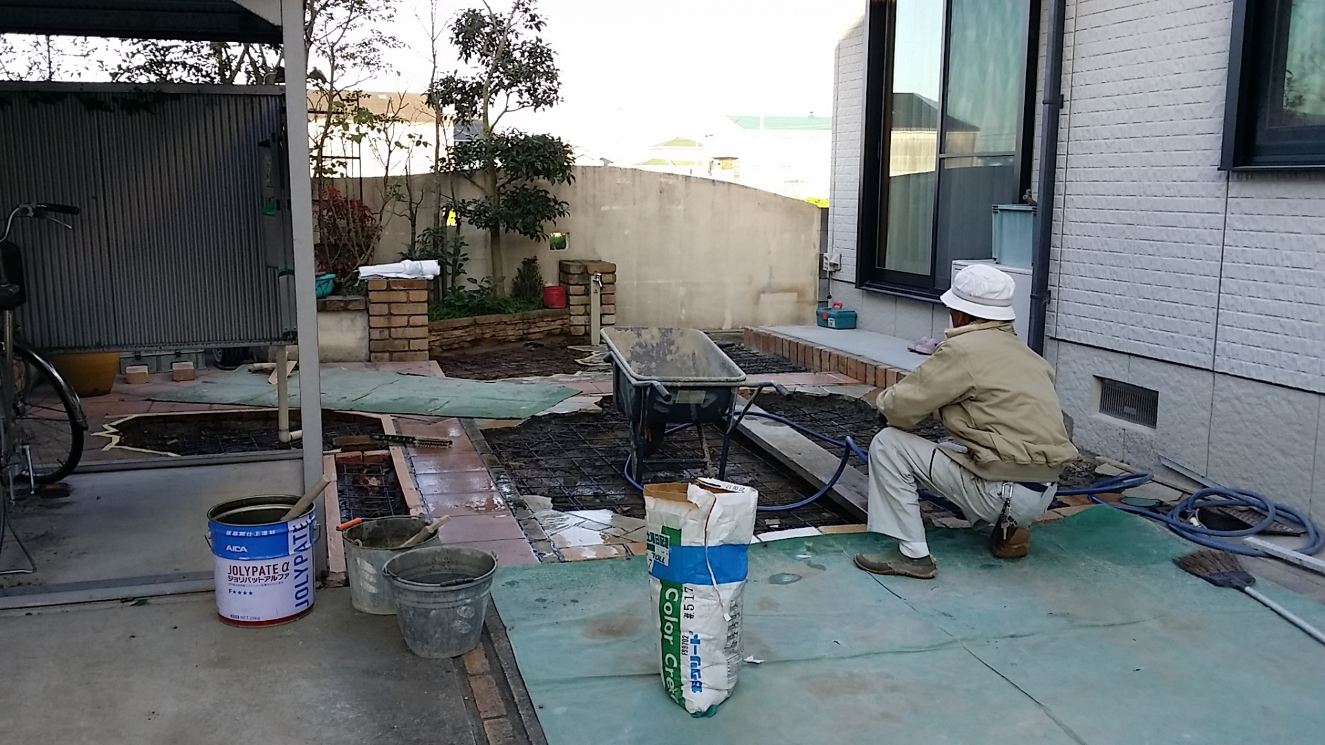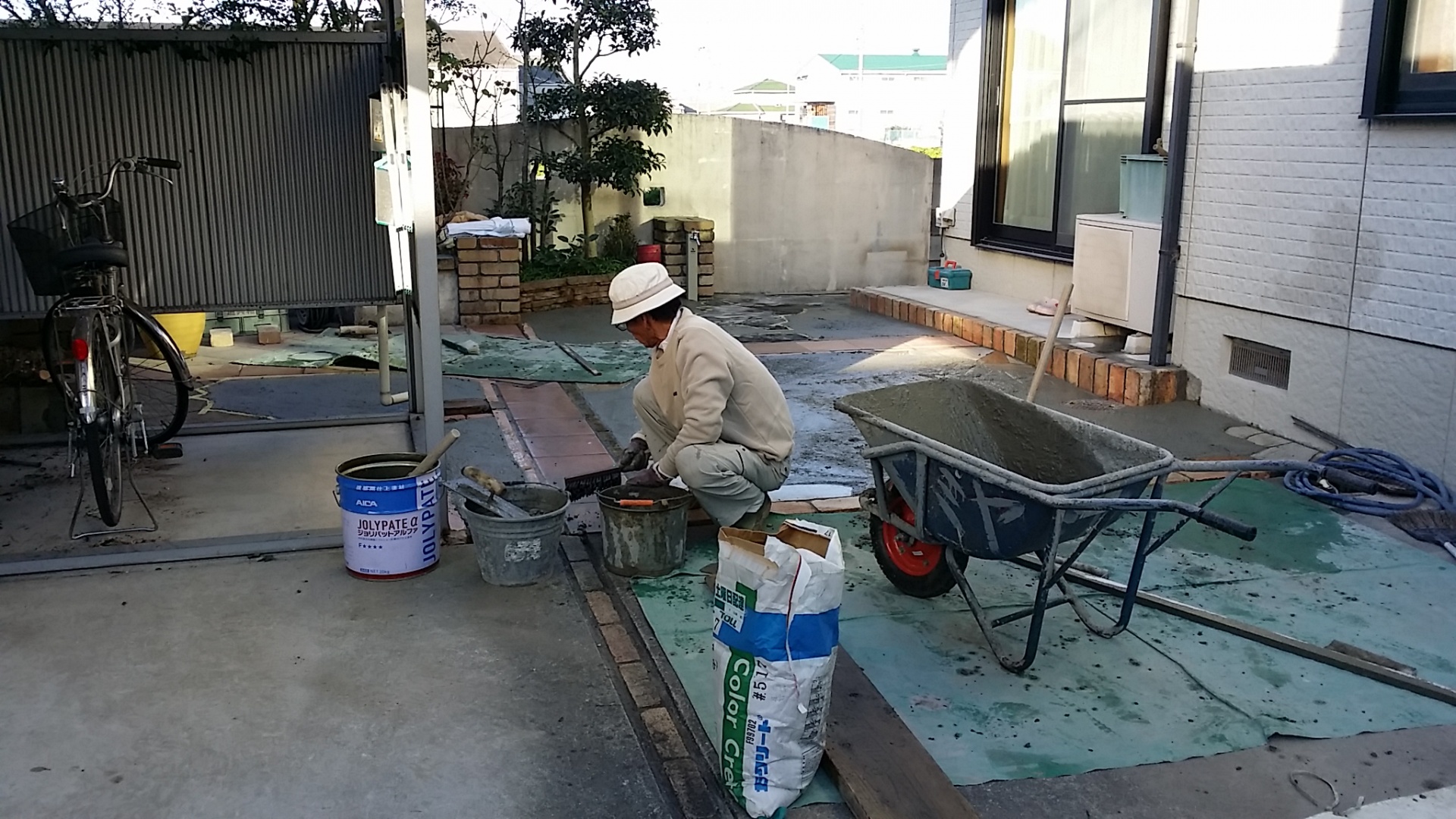 1輪車で私がミキサー車からつみかえて運んでいきます