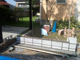 夏です レゲエです 門周りリフォーム工事のK様邸ベースコンクリート完了でブロック積になります レンガの笠で吹付塗装の下準備に移ります 表面の化粧ブロックも並行して工事中です門扉がセットされ クローズ外構へのリフォームになります。 子供たちは明日から夏休み長そうで 子供たちにとっては短い??夏休みの始まりですお父さんは夏本番のなか 現場管理 プランニング頑張っていきましょう!(^^)!