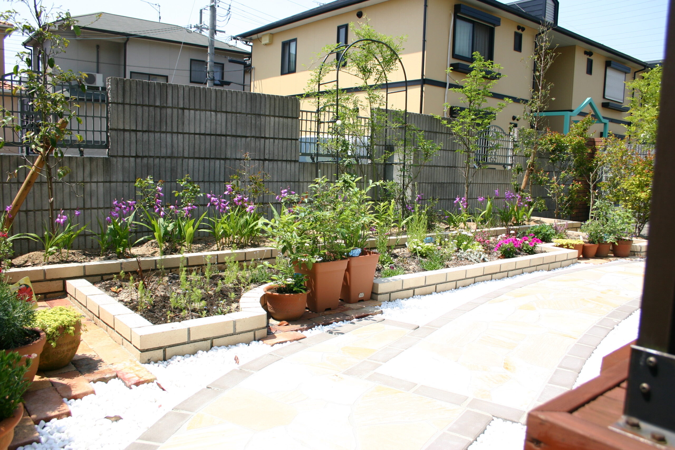 姫路市外構リフォーム 施工例 花壇 ガーデン リフォーム 花壇リフォームです ホワイトレンガの曲線デザイン 私らしいデザインです 姫路のエクステリアリフォームは 他店さんとは違う 各種1級施工管理技士の現場監理する エクステージにお任せください 安心をどうぞ 素敵なガーデンライフをお手伝いしますエクステージ ひがしぐち