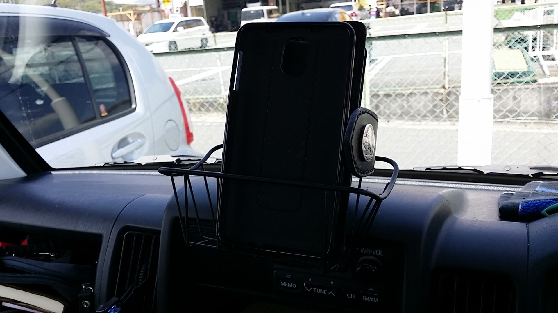 手帳タイプのカバーは軽トラ号のスマホホルダーに大きすぎてはいらない(ーー;)