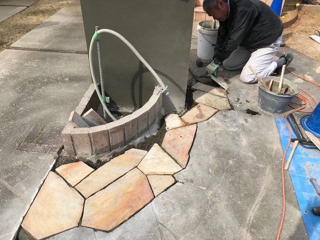 リフォームの自然石取り合い できるだけ違和感ないようにと