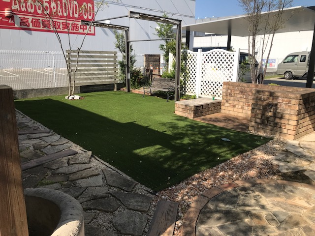 エクステージのモデルガーデンにようこそ 購入した自転車撮影して いい天気だったので お店をパチリ チョっと影がきつかったかな エクステージではいろんな商材の施工展示をしています 人工芝 自然石 リクシルカーポートSCは姫路ではここだけです来店型モデルガーデンを初めて25年しっかりした店舗を確認してお店選びをしましょうエクステージ リフォーム室 室長ひがしぐち