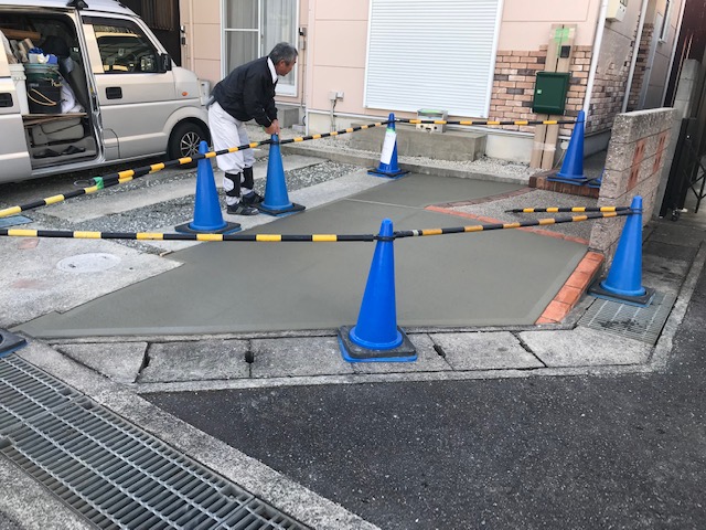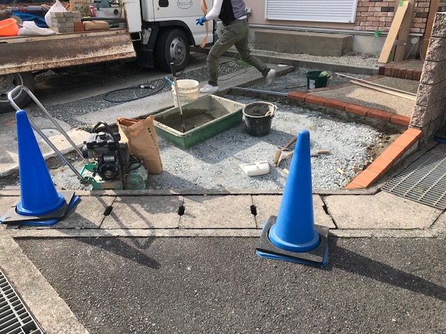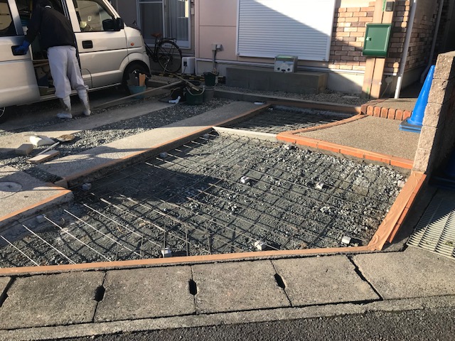 軽四の1台車庫拡張工事 太子外構屋さん 門柱を壊して クローズ外構をオープン外構へエクステリアリフォーム 軽四1台の車庫スペース確保工事 撤去後 土間コンクリート準備 門柱はシンプルにアルミ角柱 車庫証明の取れるスペースが拡張できました 車庫拡張工事は 1級の各種施工管理技士の在籍する 太子のエクステージにお任せください ひがしぐち