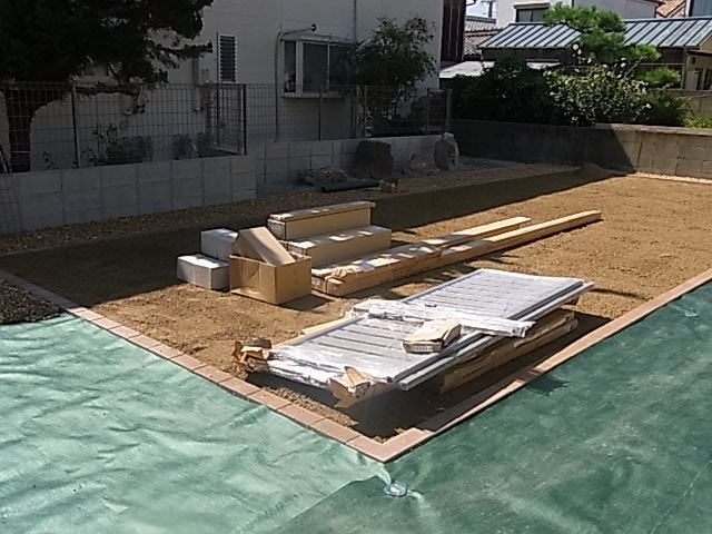 ウッドデッキの材料もそろい、庭工事の完成もいよいよです。