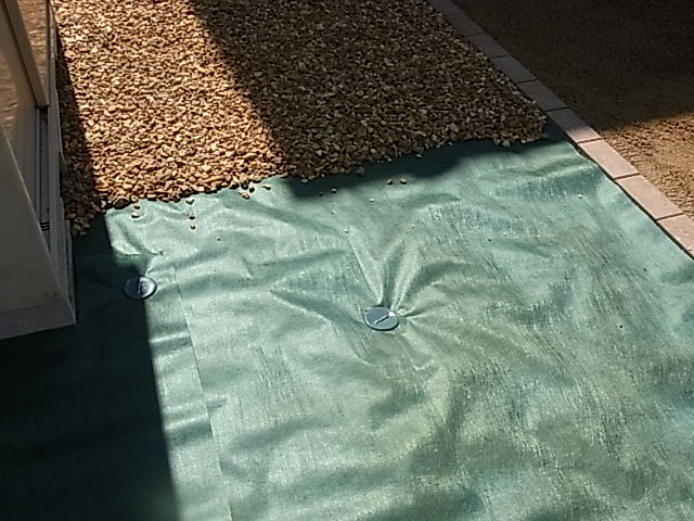 南面のサッカーグランド周囲の化粧砂利敷きです。