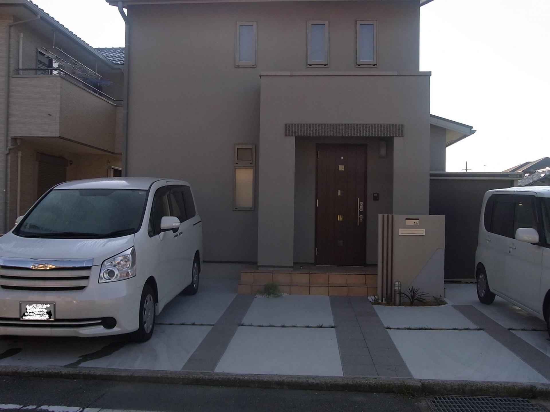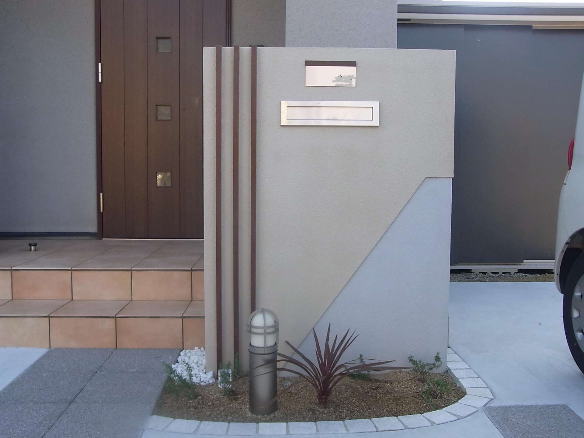 デザイナーズパーツを使ったアクセント門柱に、ニッチ加工にて2色分けの斬新なデザインで御提案したところ大変気にいっていただき、プラン変更はなしで工事の運びとなりました。