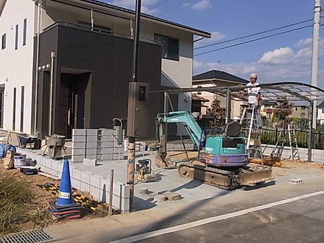 車庫3台分の工事と、門柱のエクステリア工事でした。