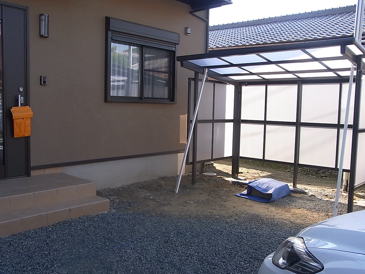 ワイドカーポートの骨組み後、屋根貼りは後日の予定です。