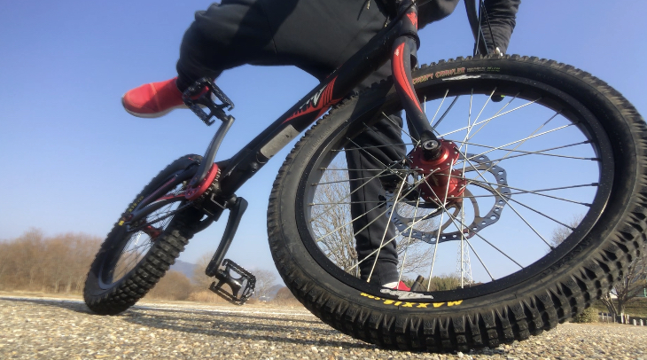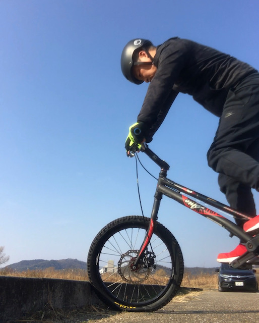 初心者は初め縁石で前輪を止めてのあてものがあれば練習しやすい